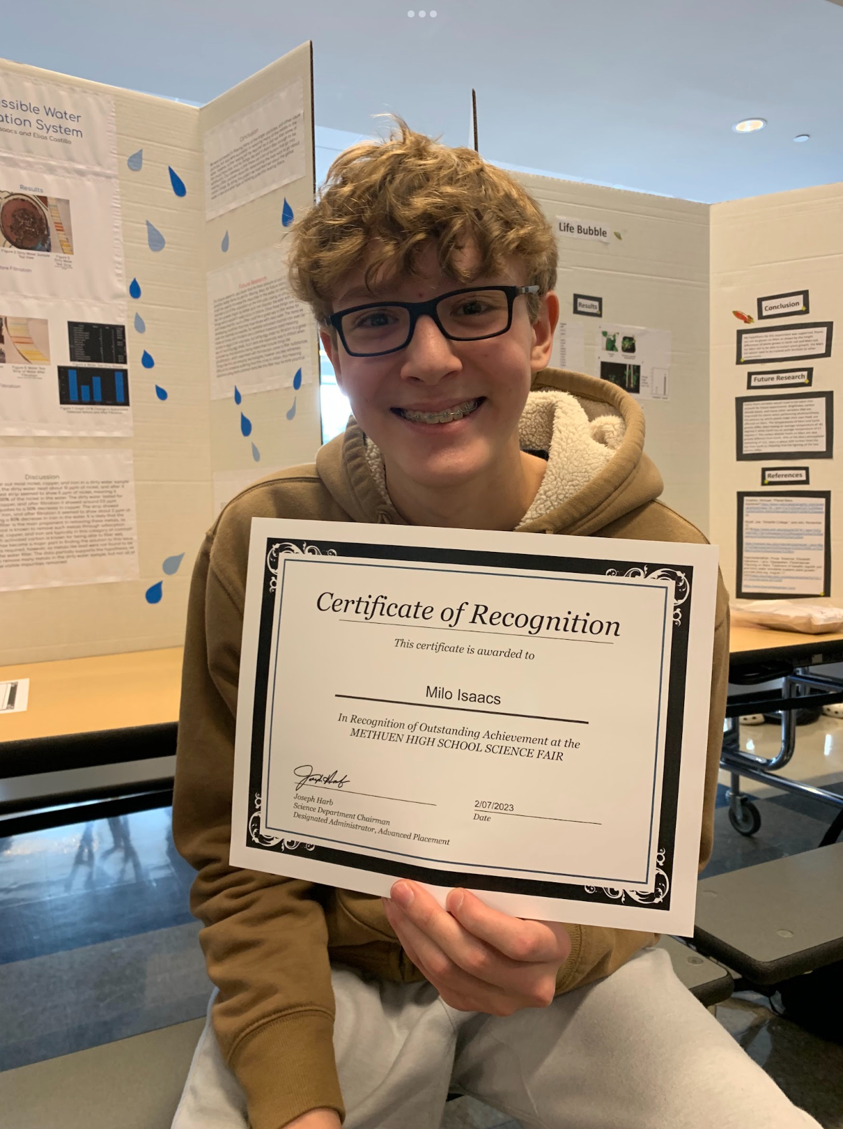 Sophomore Milo Isaacs, Participant and Award Winner (Accessible Water Filtration System): “It [the accessible water filtration system] kind of worked, woohoo!”