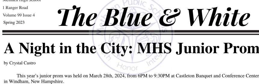 By Crystal Castro This year’s junior prom was held on March 28th, 2024, from 6PM to 9:30PM at Castleton Banquet and Conference Center in Windham, New Hampshire. Junior Class Advisor, Caitlin Canane, alongside the junior prom committee, worked tirelessly for weeks on end to transform the venue into a cityscape, with centerpieces resembling major cities like Las Vegas and New